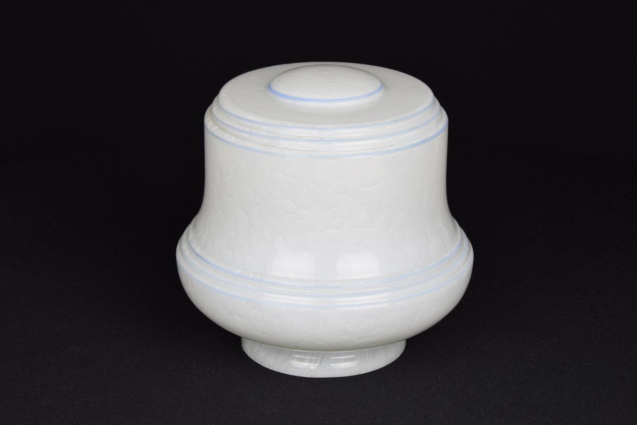 Klosz z niebieskimi paskami i z uchwytem, używany, jeden lekko uszkodzony (na zdjęciu w czerwonym okręgu).