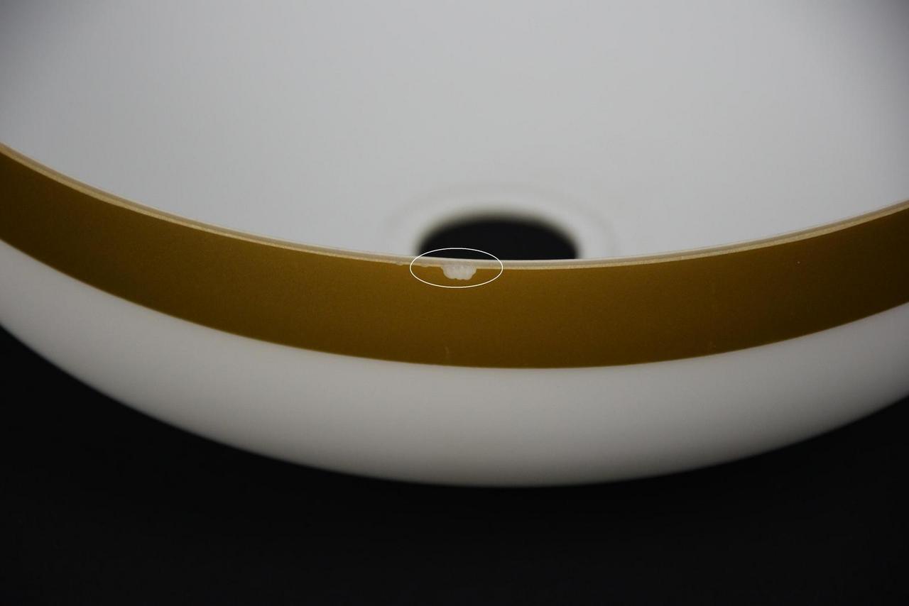 Biały klosz, matowy, uiżywany. Niewielkie uszkodzenie widoczne na 4 zdjeciu