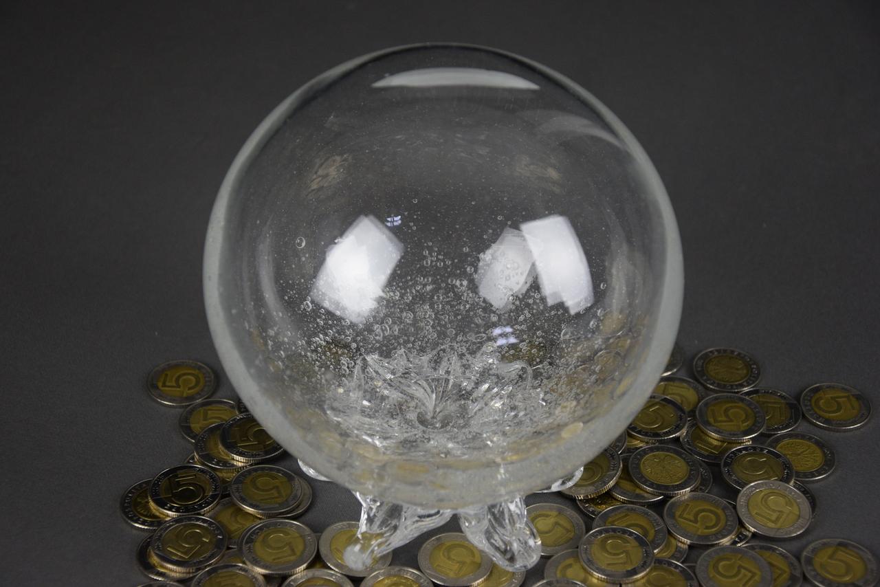 Duża szklana skarbonka KULA "Bąbelki", nowa. Aby wydostać włożone pieniądze trzeba rozbić skarbonkę.