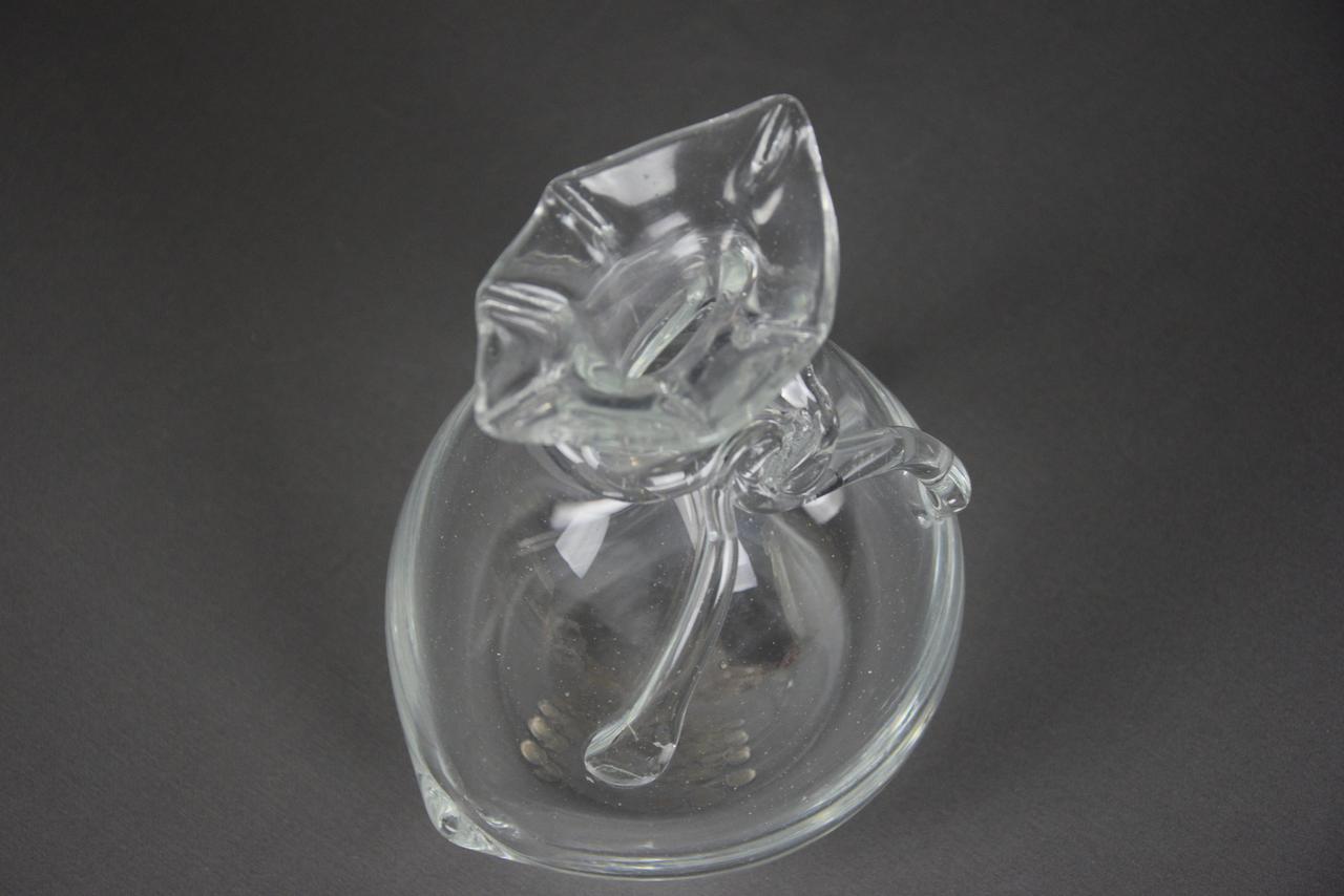 Duża szklana skarbonka SAKIEWKA bezbarwna, nowa. Aby wydostać włożone pieniądze trzeba rozbić skarbonkę.