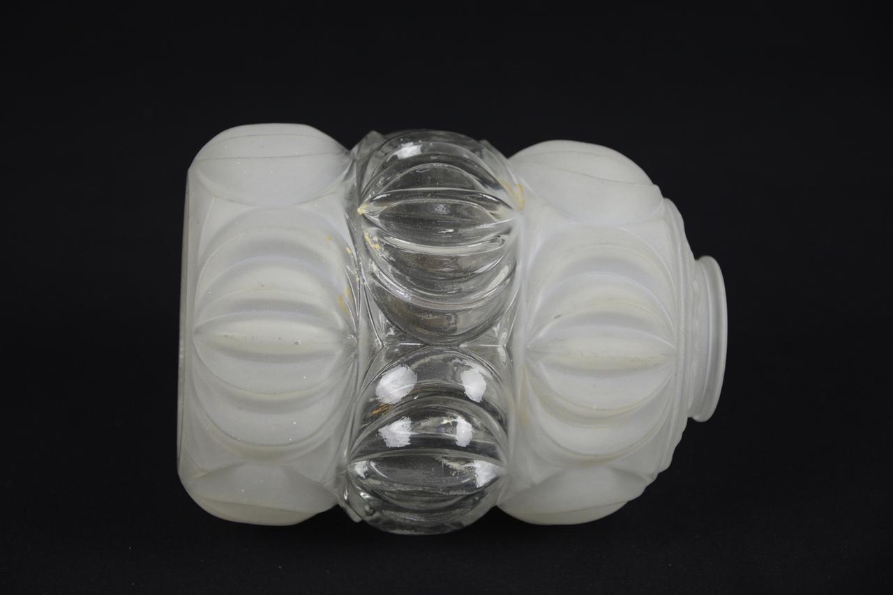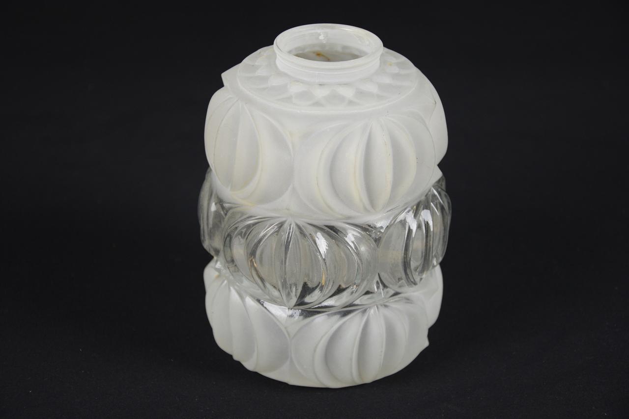 Klosz biały z fragmentem przeźroczystym, z uchwytem, używany.