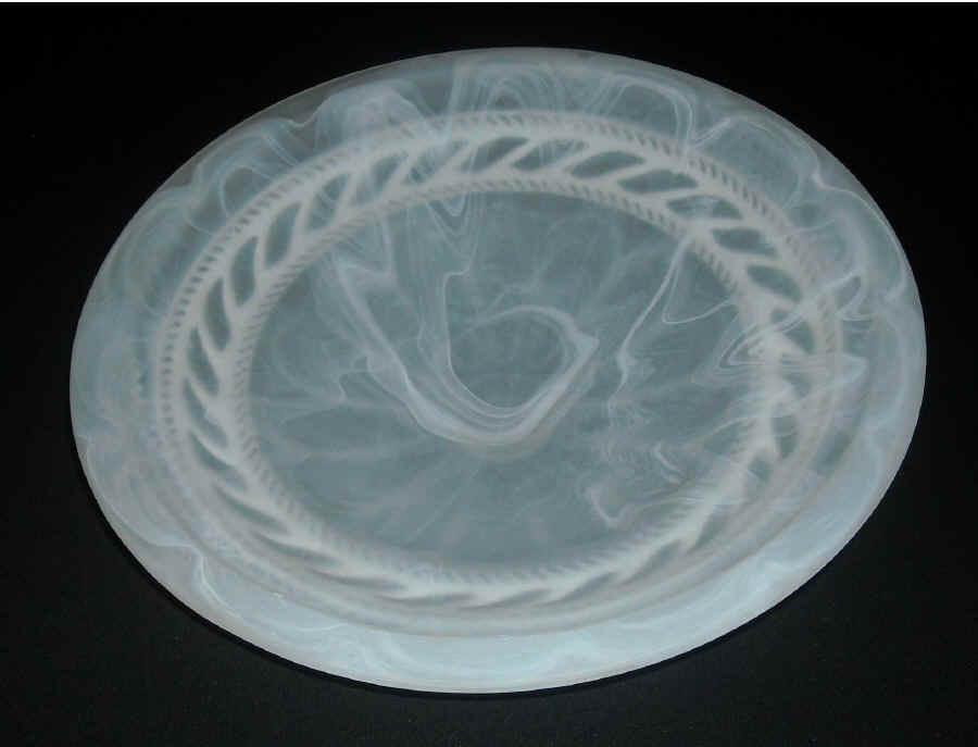 Klosz biały do plafonów z wzorkiem alabastrowym i ozdobnym paskiem, nowy,