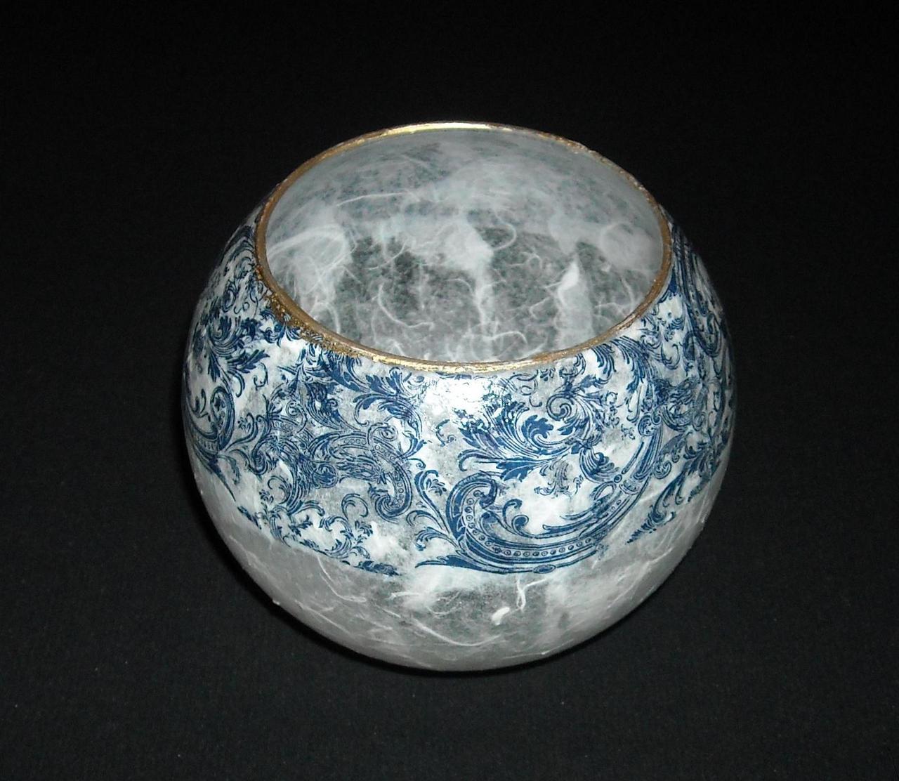 Klosz biały z granatowym wzorem, zdobiony ręcznie techniką "decoupage", pokryty ekologicznym lakierem, czyszczenie wilgotną szmatką, nowy,