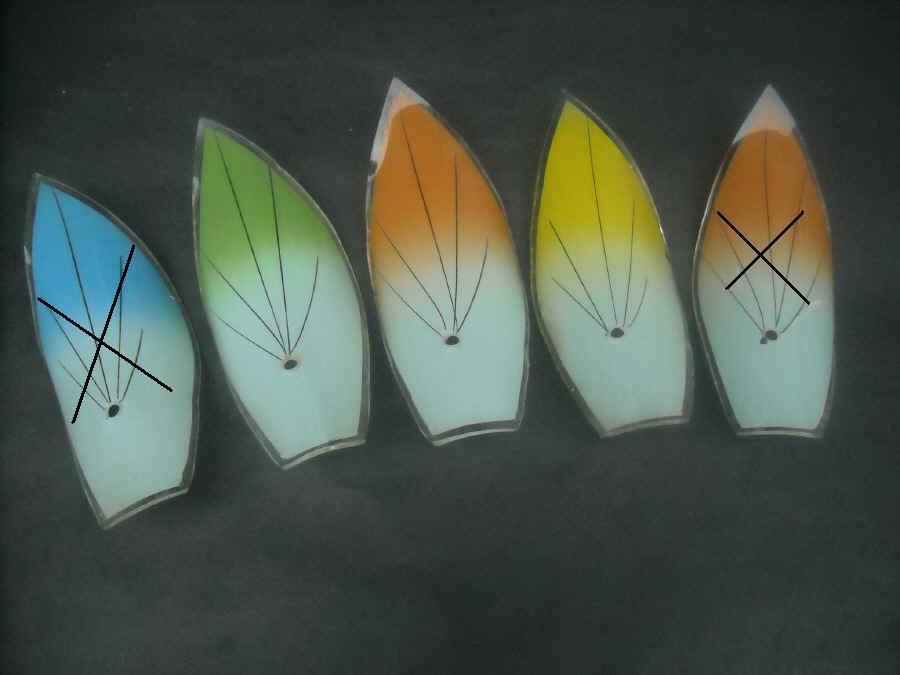 Klosz żyrandolowy , typ "fala", połysk, używany, 1 pomarańczowy pęknięty - 10 zł/szt. - w sprzedaży dostępne : 1 szt żółty, 1 szt pomarańczowy 1 szt. zielony