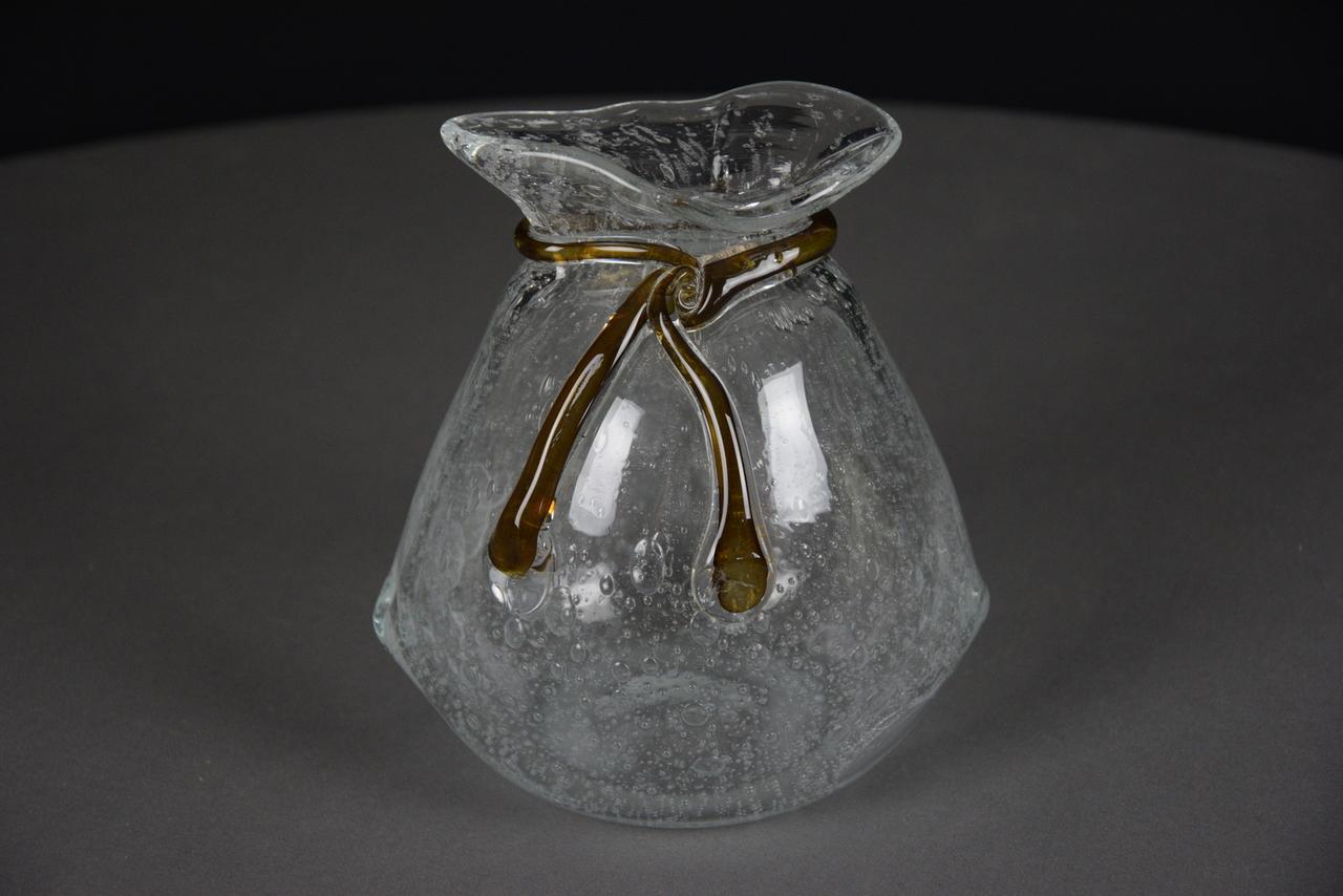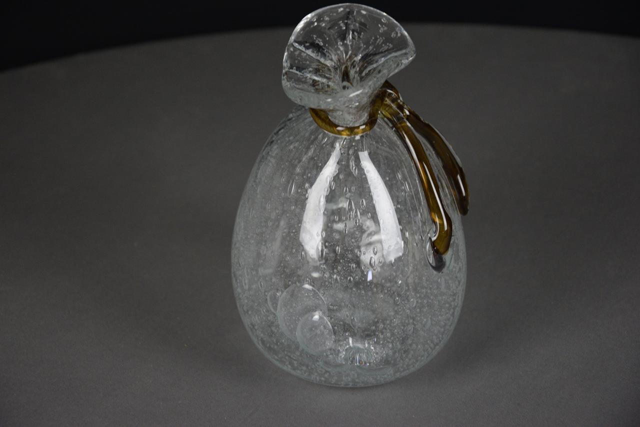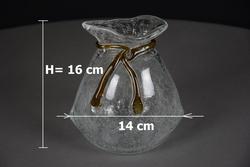 Duża szklana skarbonka SAKIEWKA "Bąbelki" z brązowym sznureczkiem, nowa. Aby wydostać włożone pieniądze trzeba rozbić skarbonkę.