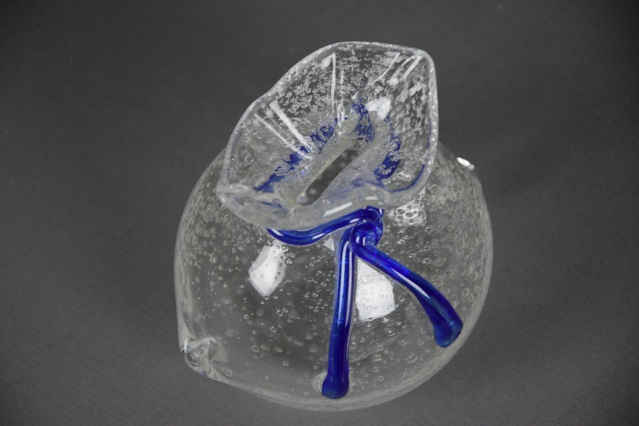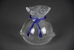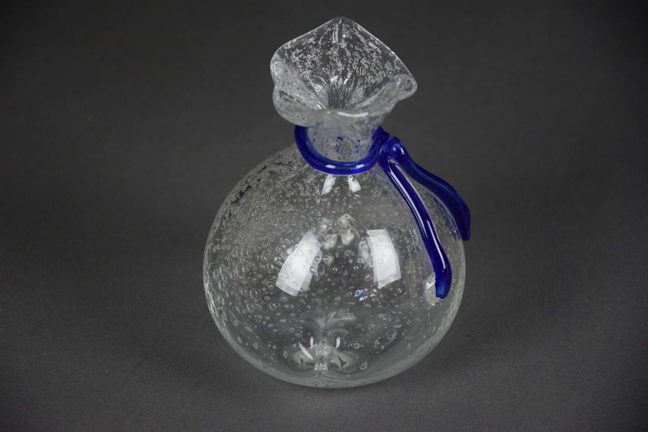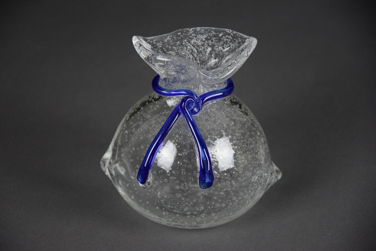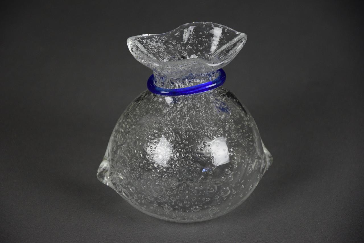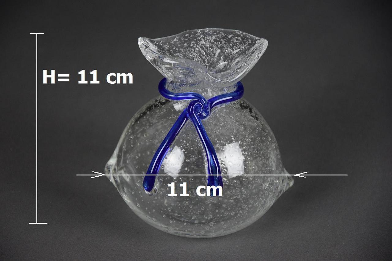 Szklana skarbonka SAKIEWKA "Bąbelki" z niebieskim sznureczkiem, nowa. Aby wydostać włożone pieniądze trzeba rozbić skarbonkę.