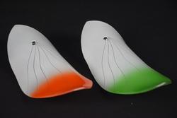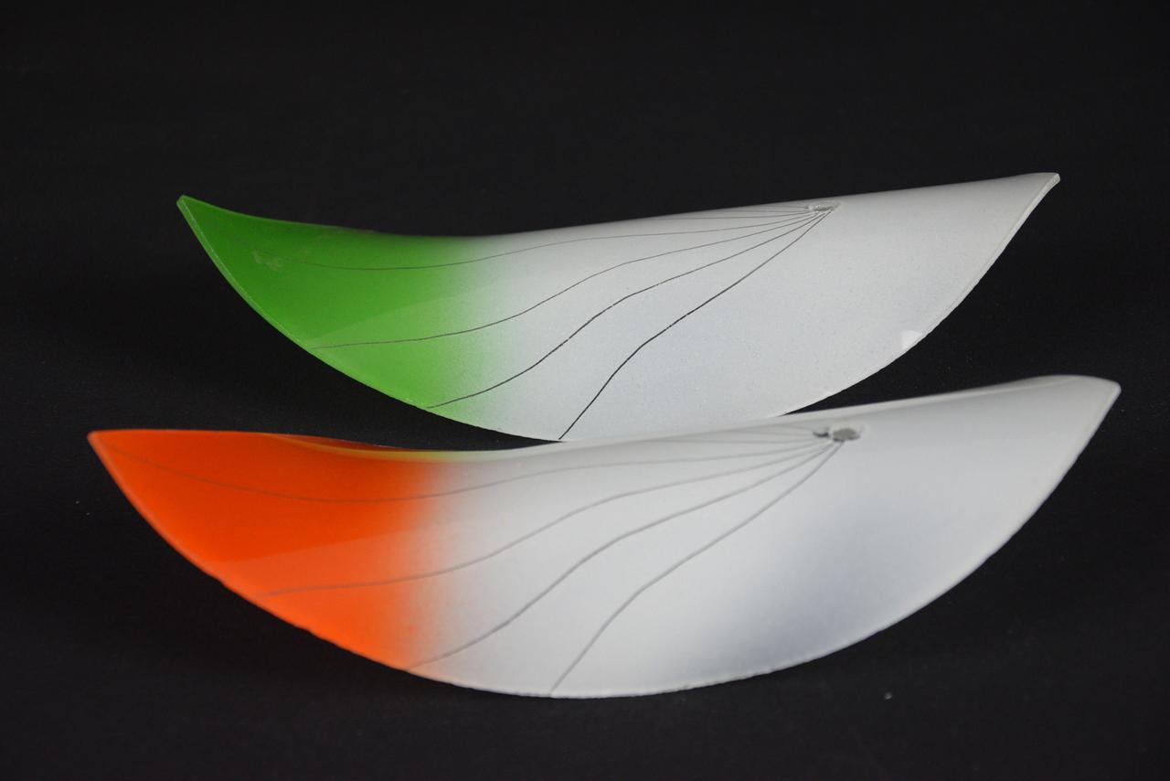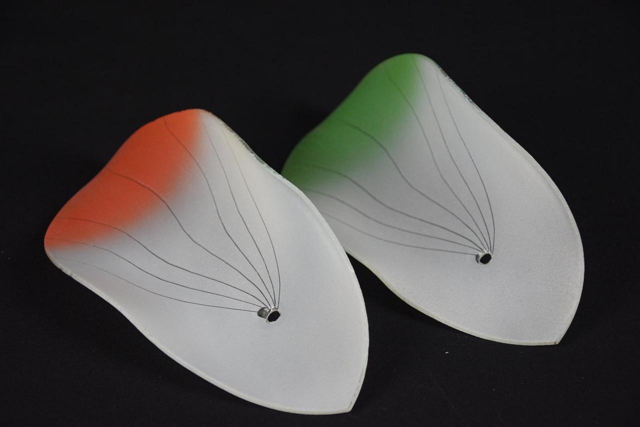 Klosz żyrandolowy, typ "fala", połysk, używany, 3 szt zielone i 3 szt. czerwone